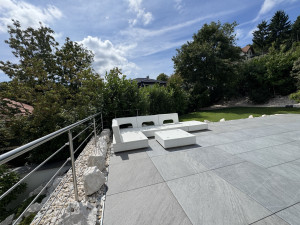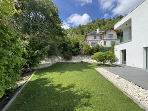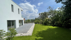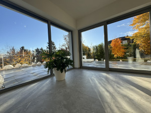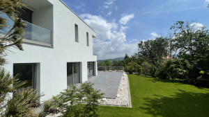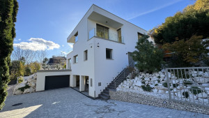 A 807 nm-es, intim, parkosított telken álló villa teljes alapterülete ~450 nm. A hatalmas üvegfelületeknek és a négy panorámaterasz változatos tájolásának köszönhetően a ház egész nap világos, a természet közelsége pedig csak tovább erősíti az otthon egyedi mikroklímáját.