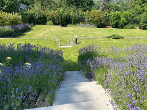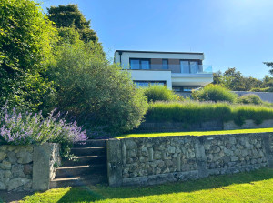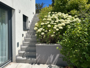 Gyönyörűen parkosított kert – teraszos kialakítással, automata öntözőrendszerrel