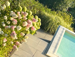 Nagy üvegfelületek, közvetlen kijárattal a teraszra és a kültéri medencéhez