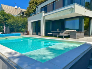 PANORÁMÁS MINIMÁL HÁZ SZENTENDRE LEGSZEBB RÉSZÉN – FŰTHETŐ MEDENCE, PARKOSÍTOTT KERT, OKOS MEGOLDÁSOK