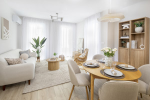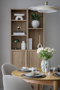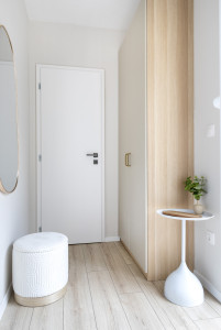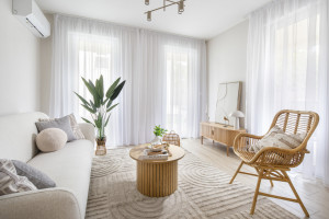 A világos, tágas terek, a nagy üvegfelületek és a letisztult, harmonikus, időtálló design és enteriőr egyaránt hozzájárulnak ahhoz, hogy a lakás egyszerre legyen praktikus és otthonos.