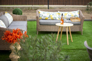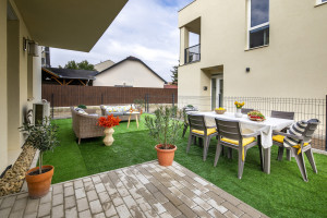 A privát, elkerített kert és a műfű tökéletes választás kisállatot tartóknak is.