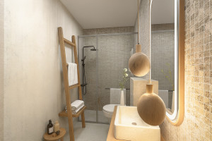 A lakások többsége nappali + 2 hálószobás kialakítású, a lakásokban helyet kapott a fürdőszobán kívül egy további vendégmosdó a kényelmes együttélés érdekében. Egyes lakások pedig két fürdőszobával is rendelkeznek.