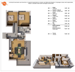 - földszinti lakások saját kertkapcsolattal, az emeletiek pedig erkélykapcsolattal rendelkeznek,