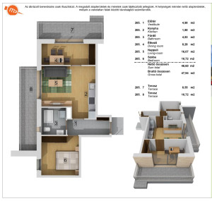 - földszinti lakások saját kertkapcsolattal, az emeletiek pedig erkélykapcsolattal rendelkeznek,