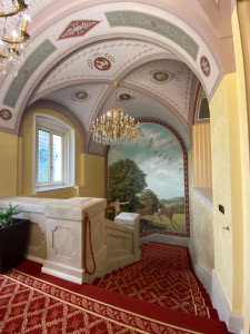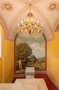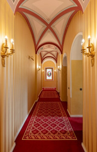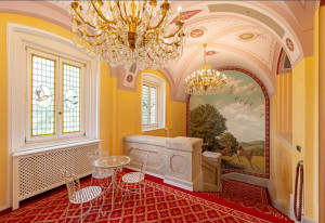 A különleges freskók, a színhasználat és a kézzel szőtt selyemhernyó falikárpitok Versailles hangulatát idézik. A mesés lakosztályok egyedi márvány kandallókkal rendelkeznek.
