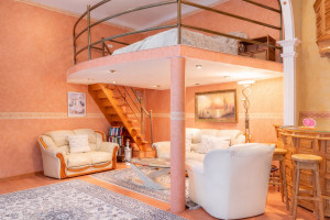 A lakás központi tere a kb. 34 nm-es, tágas nappali, nagy belmagassággal és galériával - itt egy hangulatos, kis bárpult-rész is kialakításra került. A nappaliból nyílik a szintén galériázott, kb. 13 nm-es hálószoba, amely kényelmesen berendezhető, intim pihenőteret biztosít.