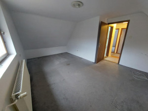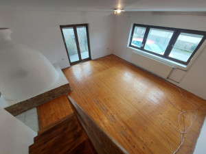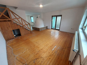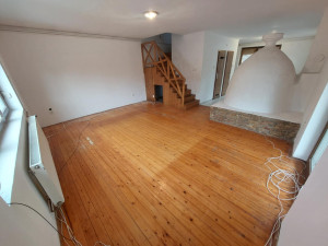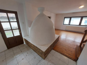 A családi házban kialakításra került: 20 m2-es konyha-étkező (+20 m2-es teraszkapcsolattal), spájz, WC-mosókonyha, 25 m2-es nappali - beltéri búbos kemencével. A földszint jelenleg is szinte egylégterű, némi átalakítással teljesen egy térré alakítható. A tetőtér beépítésre került: előtér, 1 szoba + 2 félszoba és fürdőszoba (WC-vel) található a szinten. Az ingatlan részlegesen alápincézett.