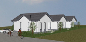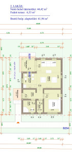egy előszoba, egy hálószoba, egy fürdőszoba WC-vel, egy amerikai konyhás nappali, illetve egy fedett és egy nyitott terasz kerül kialakításra.