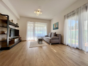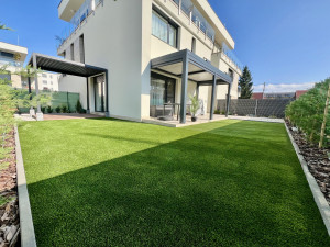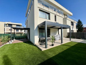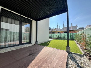 A 133 m2 nagyságú privát kert műfűvel borított és teljesen parkosított. Mind a kettő teraszon pergolák biztosítják a kényelmes kikapcsolódást.
