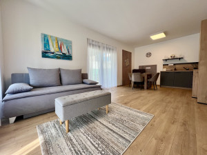 A CITY CARTEL INGATLANIRODA eladásra kínál Balatonlellén, vízparti utcában, új építésű, kis lélekszámú társasházban található, földszinti, 133 m2 saját, prémium kialakítású kerttel rendelkező, 50 m2 lakóterületű, teljesen berendezett tégla lakást.
